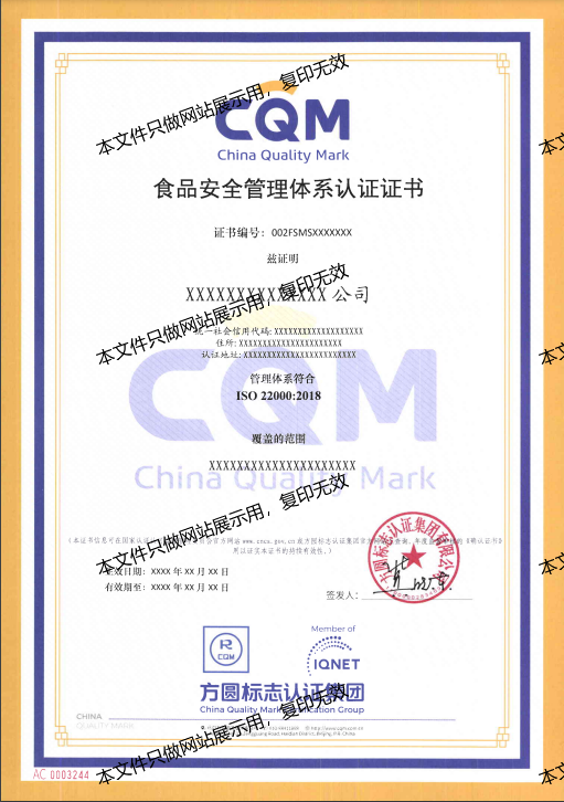 1. 認(rèn)證用標(biāo)準(zhǔn): 食品安全管理體系認(rèn)證 GB/T22000及相關(guān)專業(yè)專項技術(shù)要求