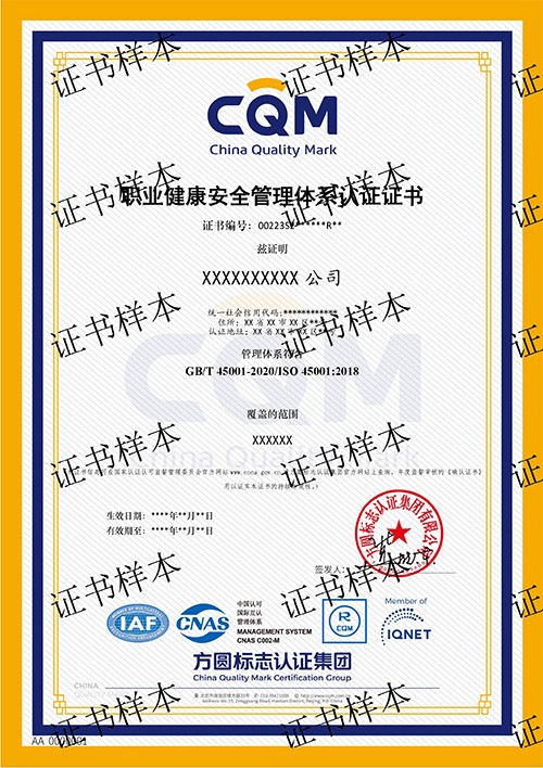 職業(yè)健康安全管理體系認證業(yè)務范圍
