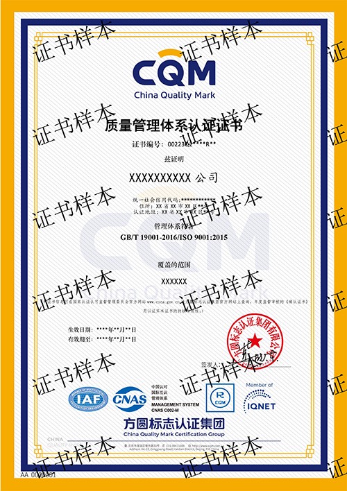 質(zhì)量管理體系認證業(yè)務范圍